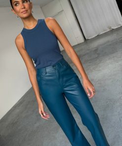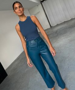 Never Fully Dressed Women’s Teal Vegan Leather Trousers