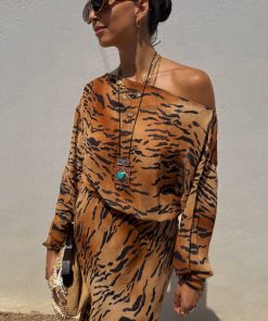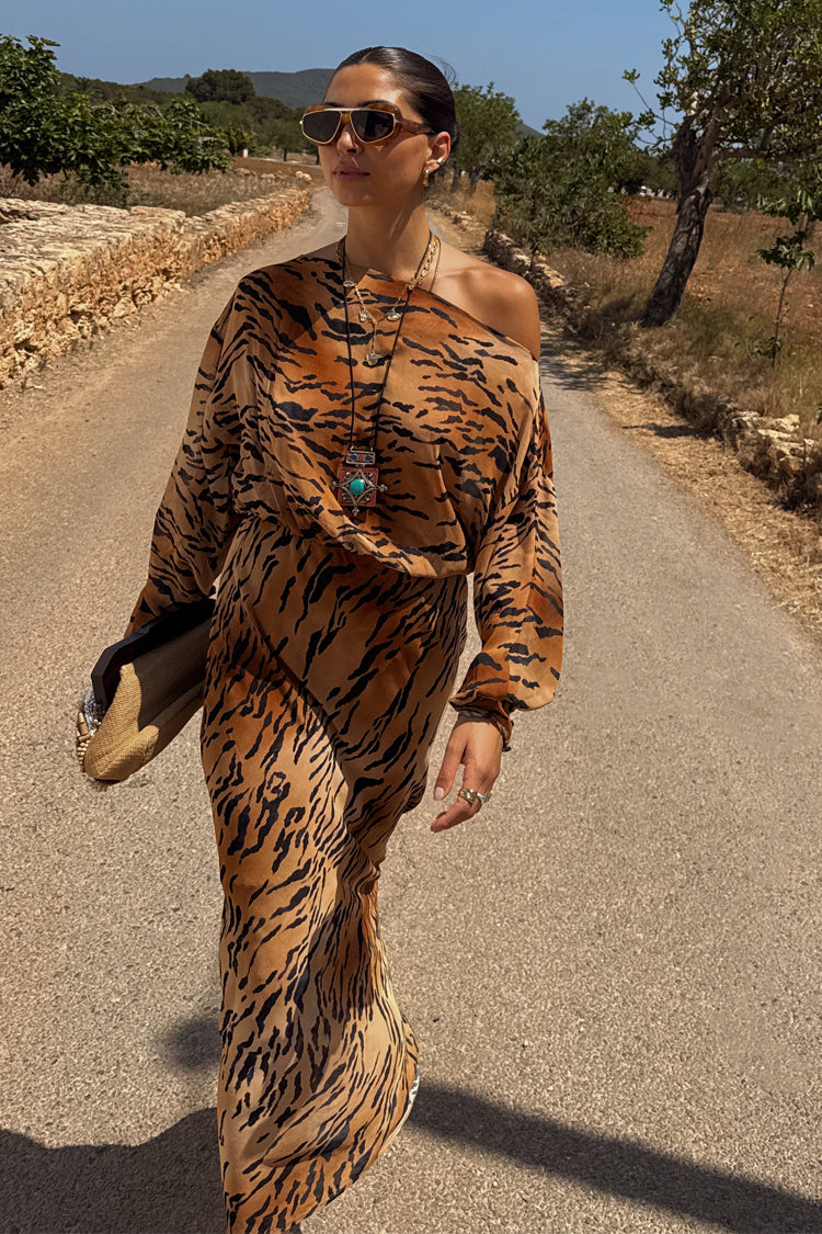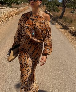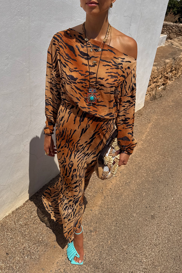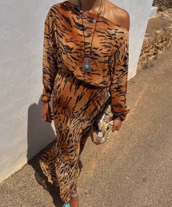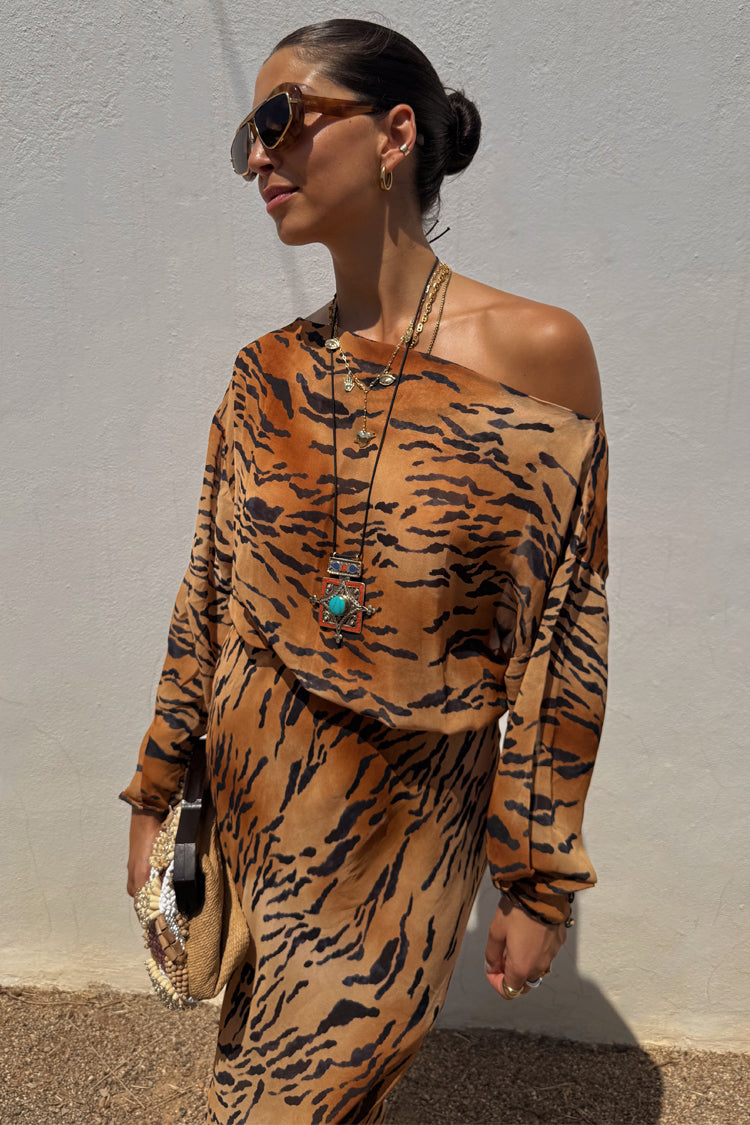 Our iconic tilly dress in a new animal print! The bold tiger print paired with the relaxed off the shoulder silhouette makes this dress super wearable, whether you’re strolling along the coast or dressing up for an evening out with the girls. The elasticated cuffs also allows you to adjust for your comfortability.