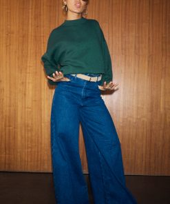 These jeans give off major effortlessly chic vibes! A wide, palazzo style leg that creates a slightly more voluminous shape that works with both a trainer and a heel. Showcase the pocket detail with a tucked in tee or shirt. Wear high waisted and fitted, or size up for a more grungy ‘sits on the hips’ look.