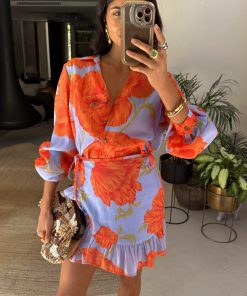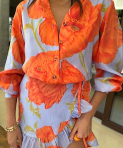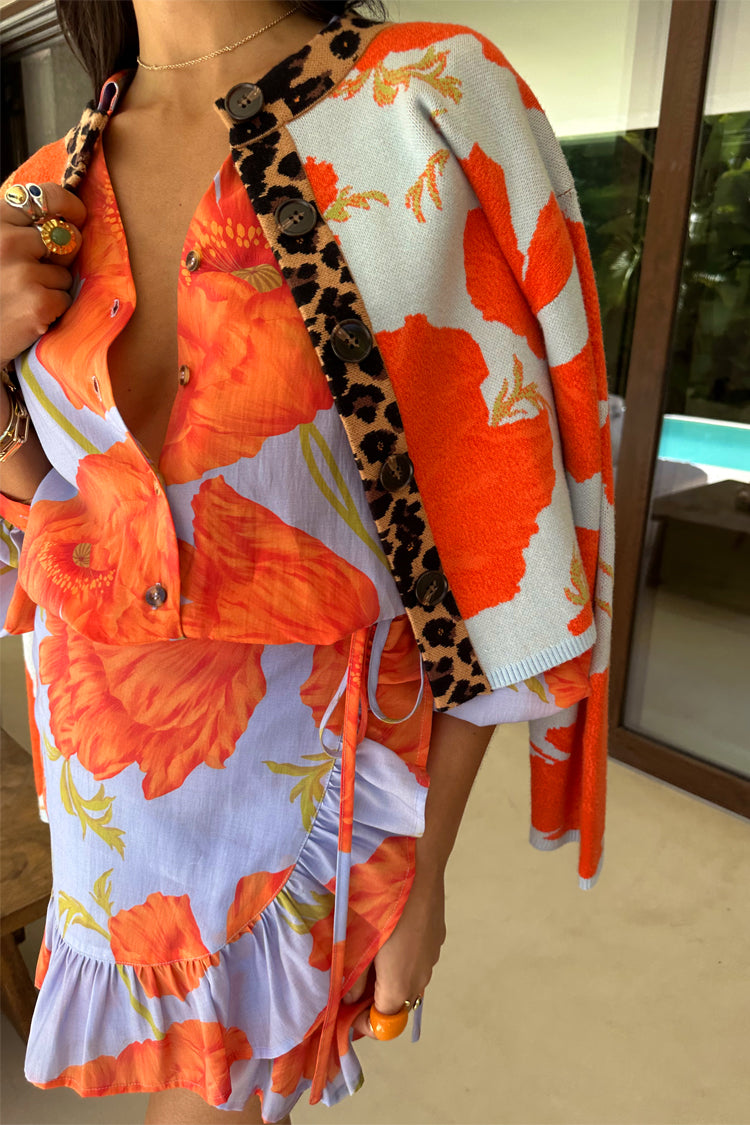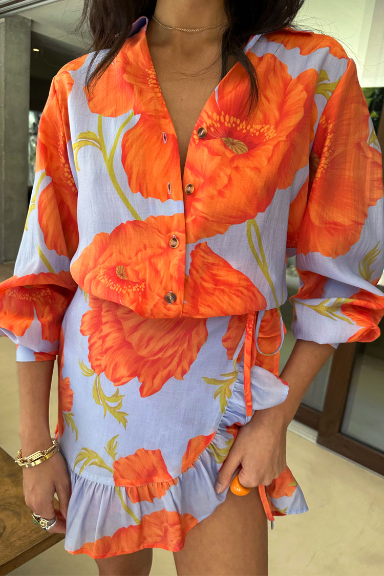 Never Fully Dressed Women’s Blue Poppy Mini Jaspre Skirt With Frill