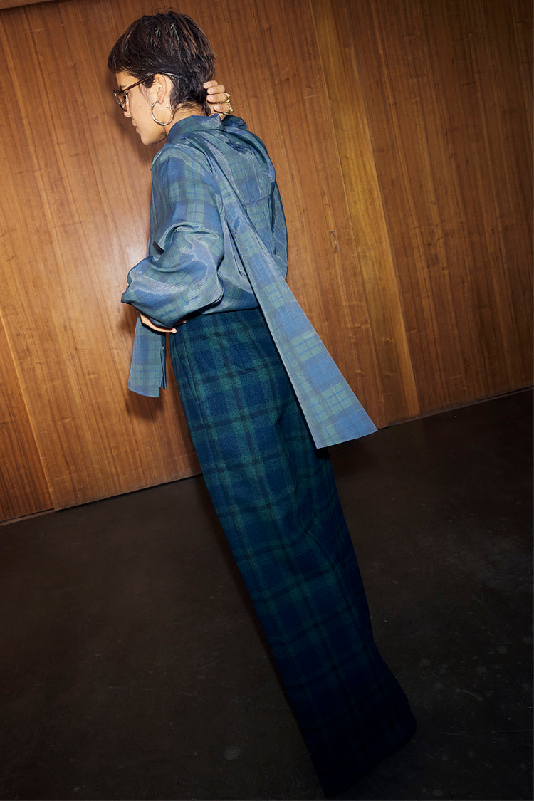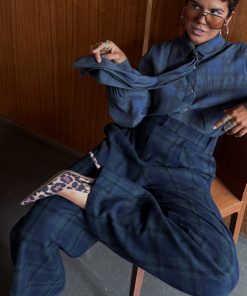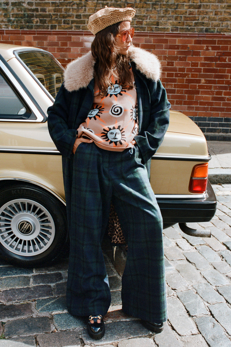 These trousers are giving autumn/winter business casual and we’re obsessed with them! A subtly bold green and blue tartan print in a relaxed tailored wide leg shape that, paired with the matching shirt or even a tee to tone them down, feels effortlessly put together. And if you love the print as much as us, check out the matching coat!