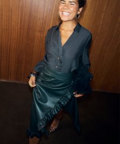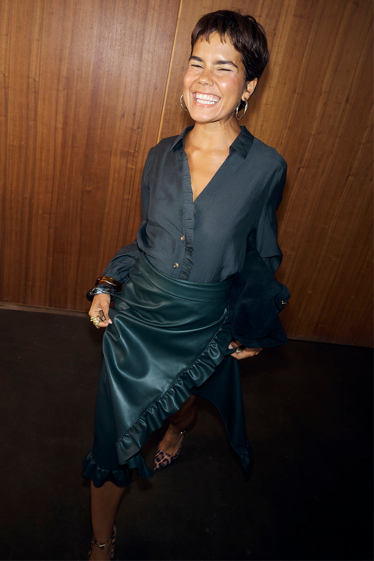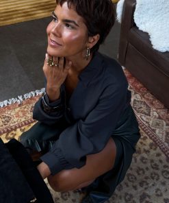Our classic miley shirt with a twist! With blouson sleeves, a floaty silhouette and ruffle detailing along the button stand for an added touch of texture. We have added contrast tortoise buttons for an extra touch of interest and gorgeous embroidered logo on the back neck.