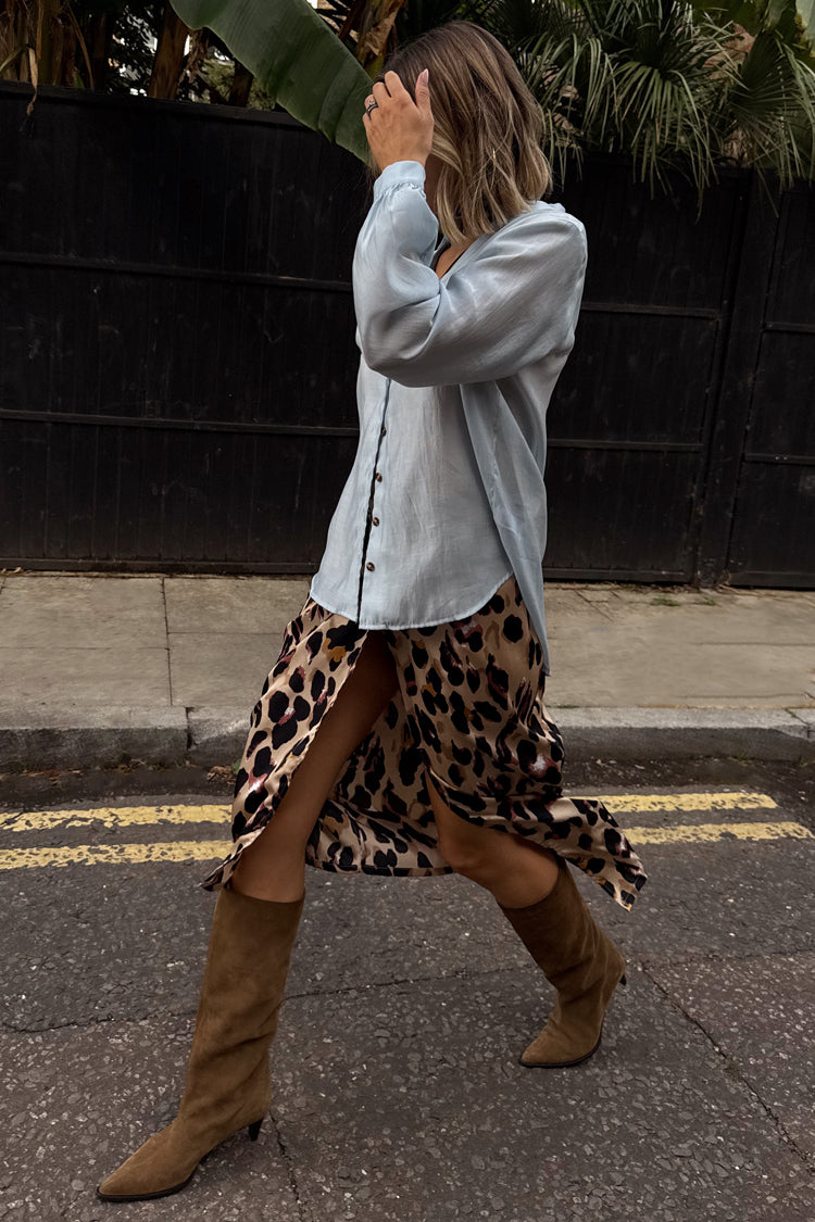 We’re redefining leopard print with our bestselling Jaspre wrap skirt. We believe it’ll become the most reached for item in your wardrobe (don’t worry minimalists, we consider it a neutral). We’ve added french seams to give it such a smooth finish and improved quality. With a slight a-symmetric hem and adjustable wrap for a whole host of versatile styling options, and cut from a sleek satin, it’ll skim the figure and define the waist. Wear to weddings or just with a tee and trainers for the school run.