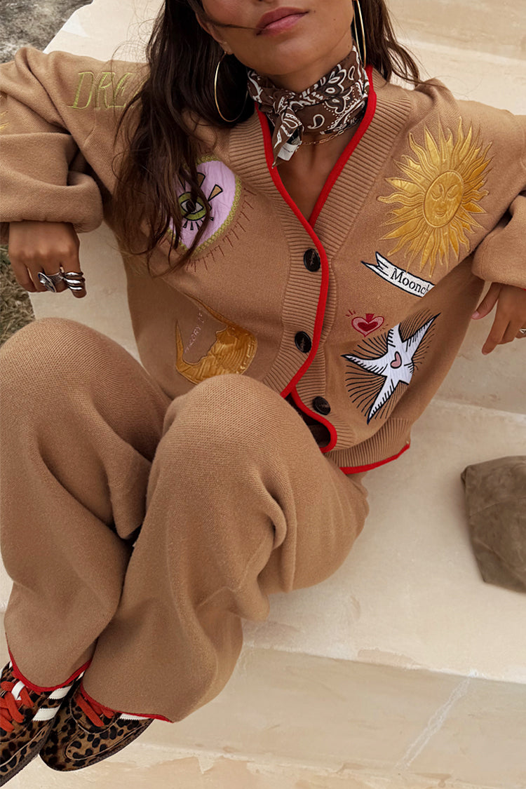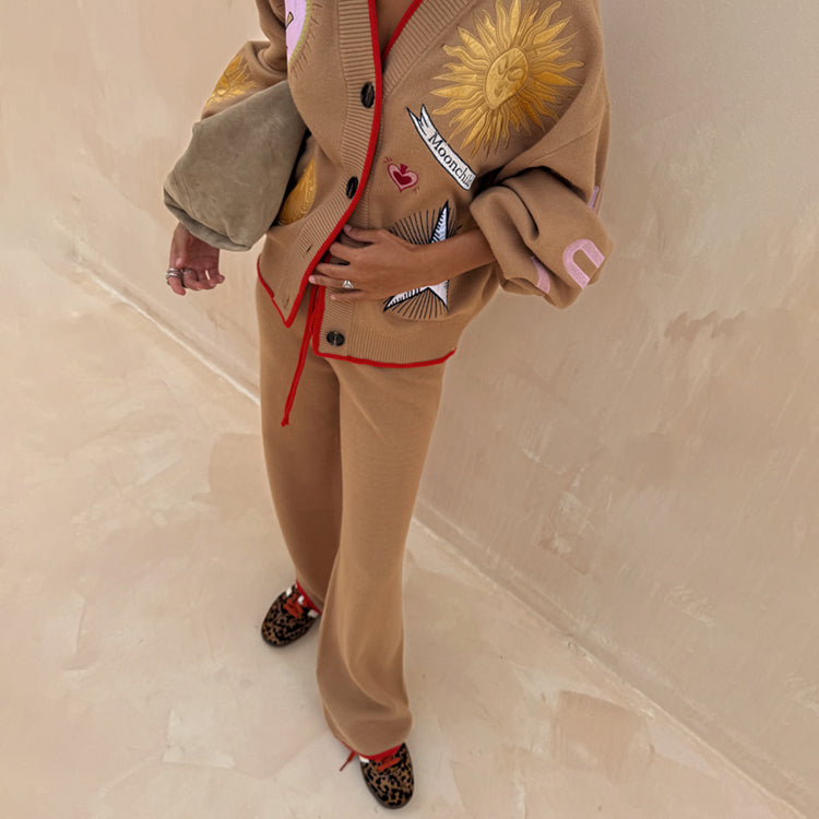 When you want to keep it simple but still comfortable! Our wide leg joggers is your wardrobe essential for this season. A simple design with contrast red trims and drawstrings. Add the matching mystical cardigan for the perfect casual co-ord.
