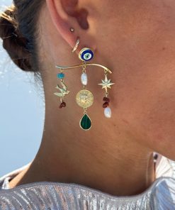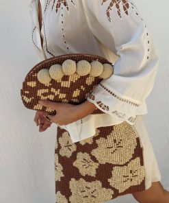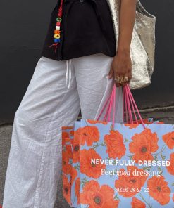 In a soft denim base, printed with mystical motifs scanned and painted from hand crafted printed tin jewellery created by our very own founder, Lucy! The structured baguette silhouette allows for a spacious interior that’s perfect for keeping your day to night essentials. Style with the matching deloris dresses or clash with prints and textures for that signature NFD vibe!