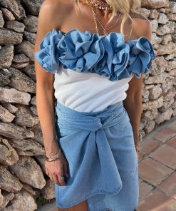 Everyone’s favourite, the denim jaspre now in mini! The wardrobe essential you NEED. So stunning as we’ve styled it with the rose crop top and a wedge but looks just as great with a graphic tee and trainers or office chic with a shirt and sandals. Such a perfect throw on for an effortless look, even carried through the seasons with boots – with so many styling options it’ll be your most worn piece (guaranteed).