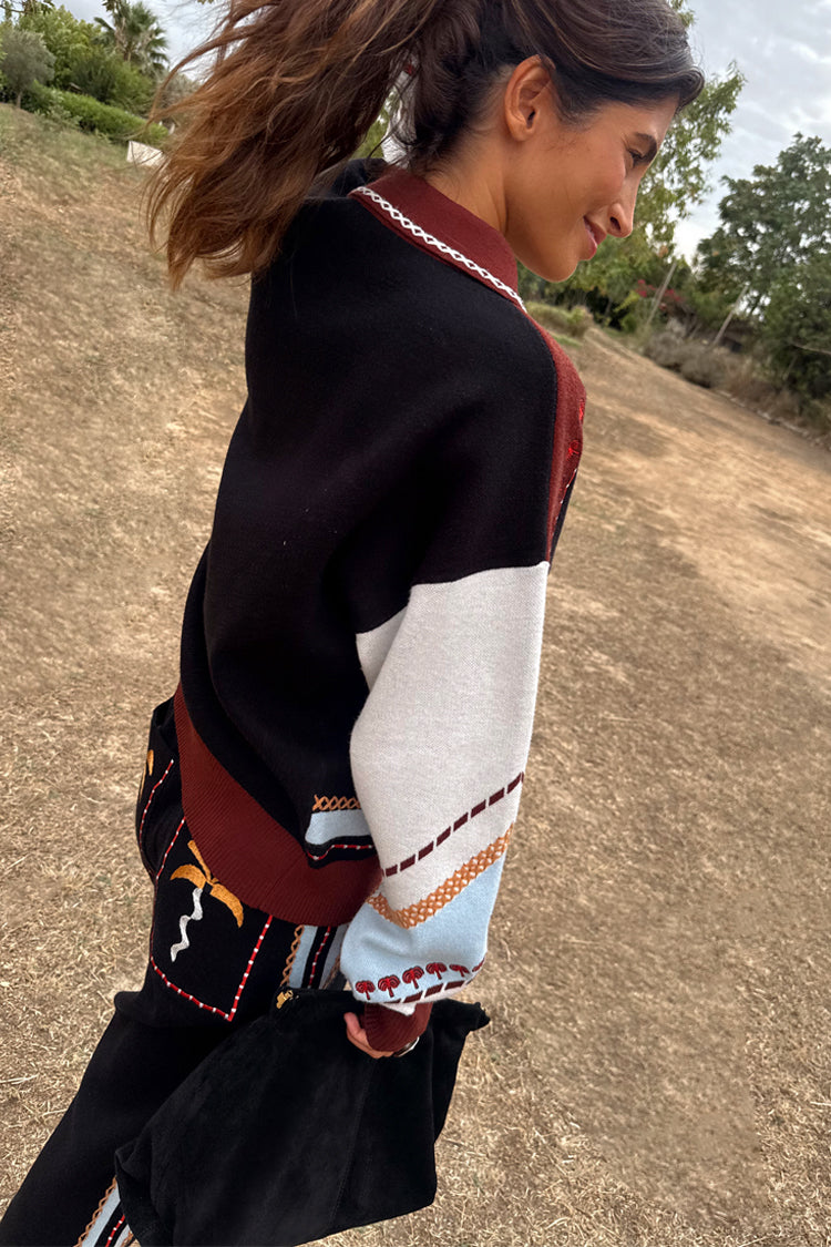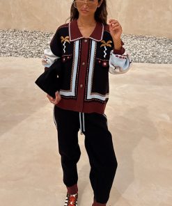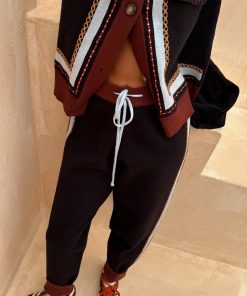 The perfect throw on co-ord for the transitioning seasons! In a slim fit structure and a soft knit base with geometric detailing along the sides and a contrast hem for an extra touch of interest. Pair with the matching bomber cardigan or a tank for an effortless everyday wear.