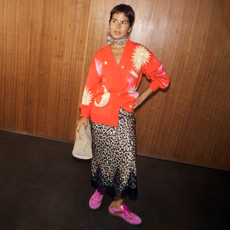 You loved our Maeva skirt so much we had to recreate it as a midi skirt! In our classic leopard print with a gorgeous lace border to add that touch of NFD flare! The perfect multi seasonal piece that can be worn through the colder months into the summer heat. Pair with a simple tee and sneakers or dress up with a blazer and some kitten heels.