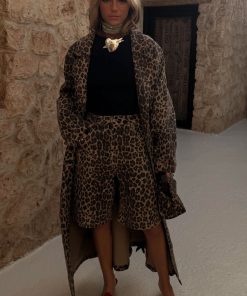 The iconic 55 jacket in our iconic leopard print – the definition of feel good dressing! We’ve kept the silhouette simple and let the print and details do the talking. In a breathable stretch denim, with a detachable tie waist fastening, front pockets and contrast orange french seams. Perfect for taking through the seasons and layering under in the winter.
