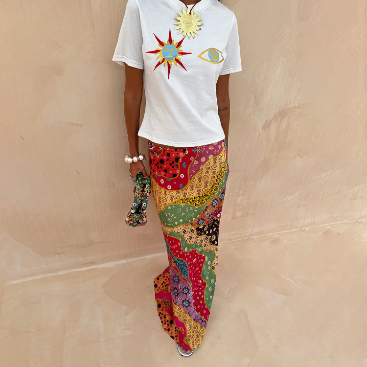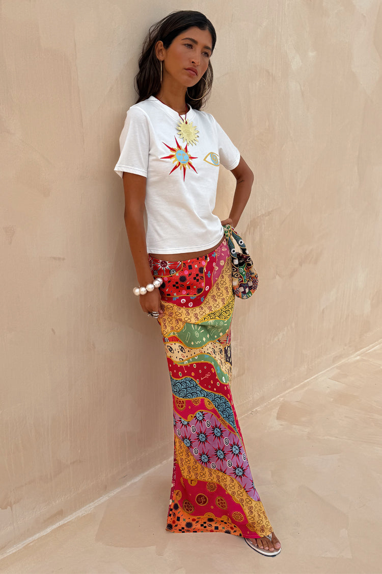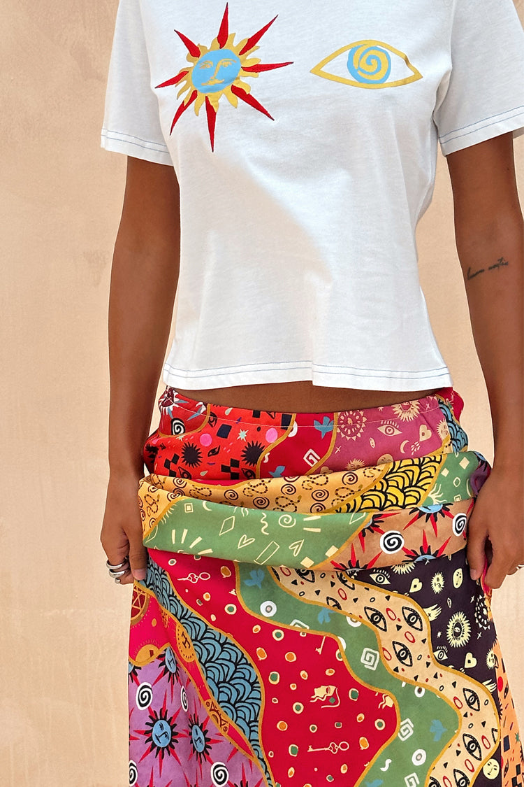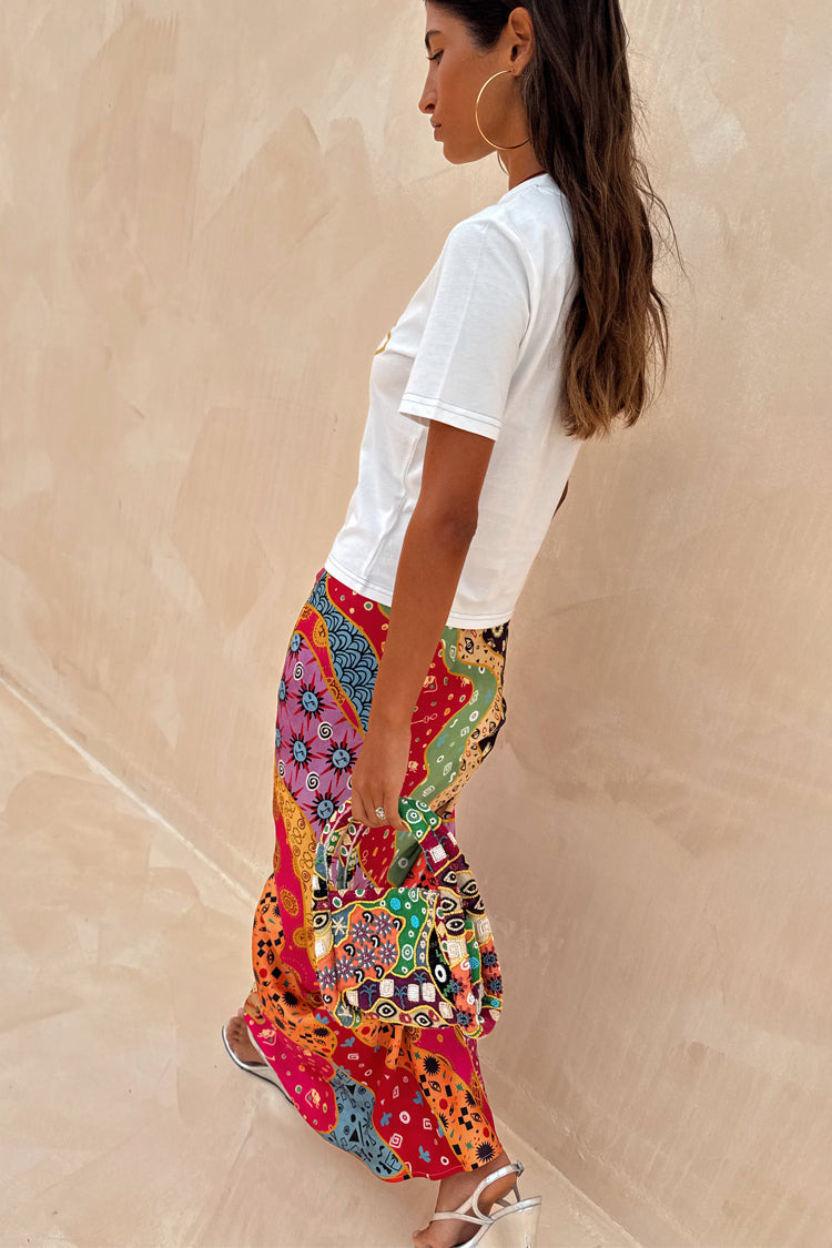 In our best selling dorris silhouette, featuring a combination of abstract designs patch-worked together to create our Morocco print! Throw over swimwear for sun filled days by the sea or pair with a tee and sneakers for an easy day to night outfit!