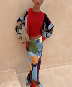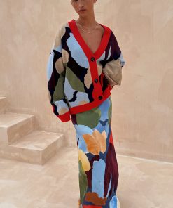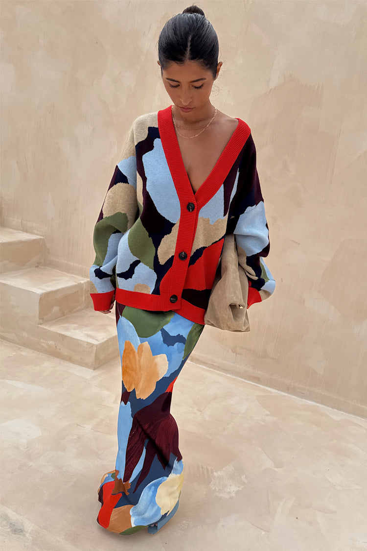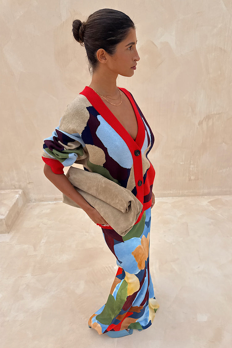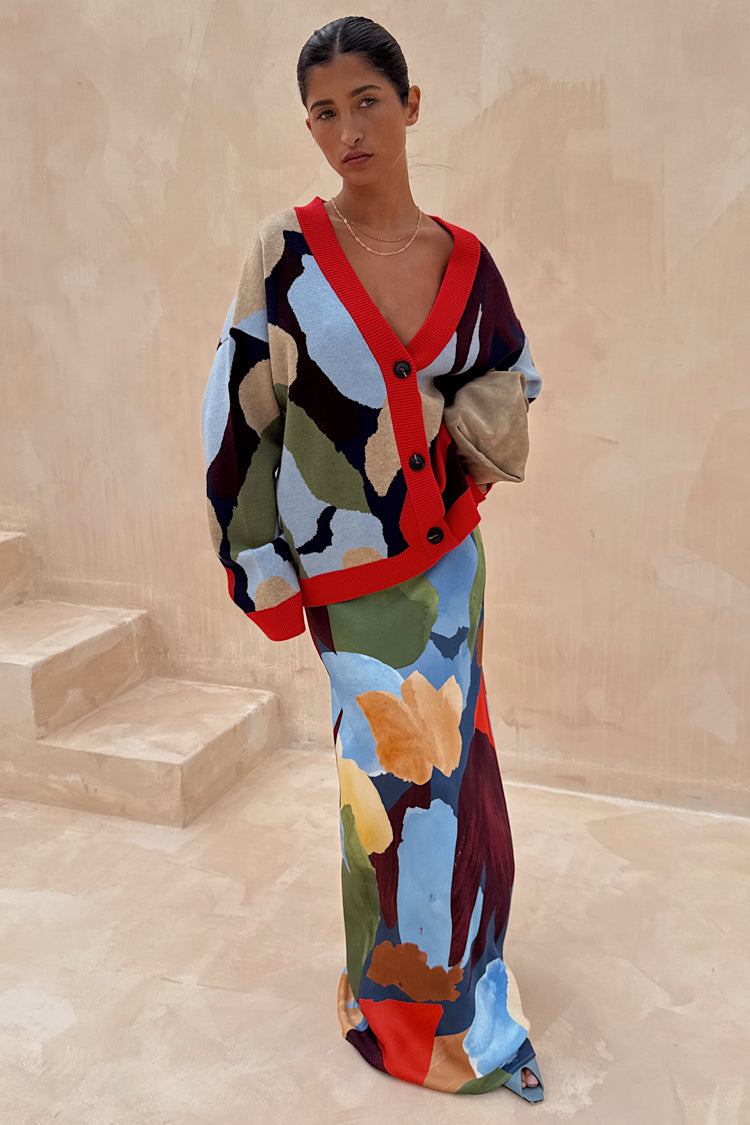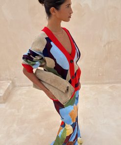 Our iconic Dorris silhouette in a bright and bold abstract print, inspired by our iconic artist print, hand painted by our in-house design team and a definite trans-seasonal piece. Pair with the matching cardigan or vest for an effortless co-ord or with a simple tee and trainers.