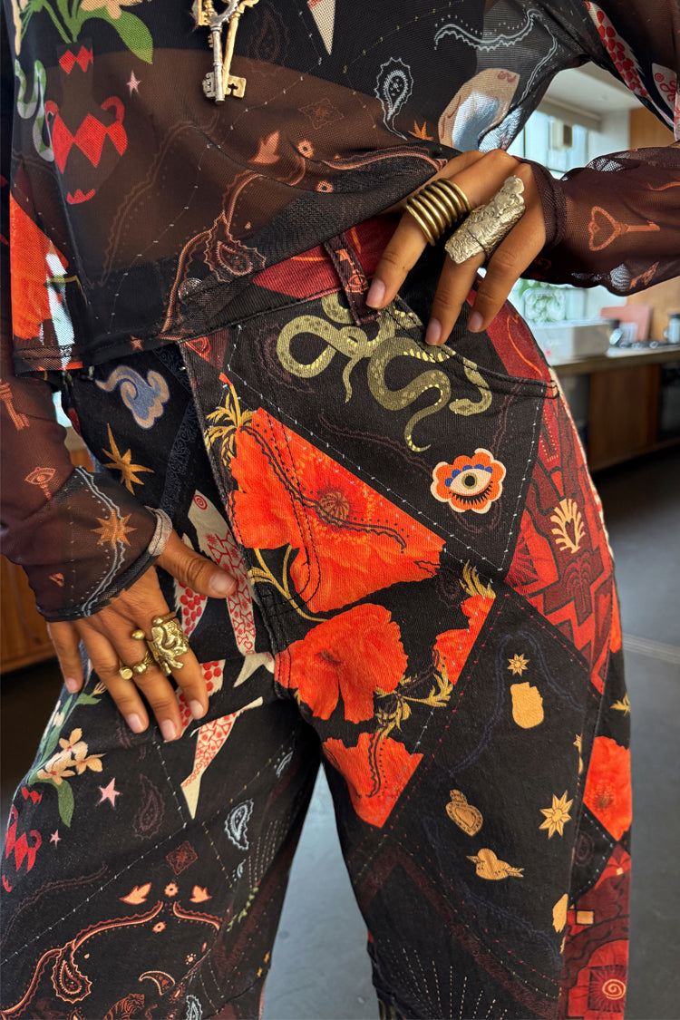 You guys loved our stud barrel leg jeans so we had to add another pair to the mix! In a classic black base printed with our new night garden design, featuring combinations of our iconic leopard, mystical, poppy and bandana motifs from our bestselling prints. These jeans are so chic and easy to style, they’re a deffo for your 2025 wardrobe!