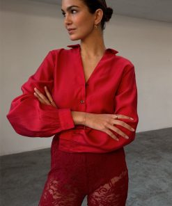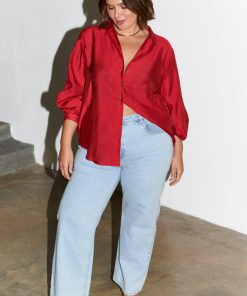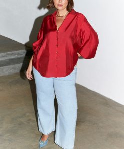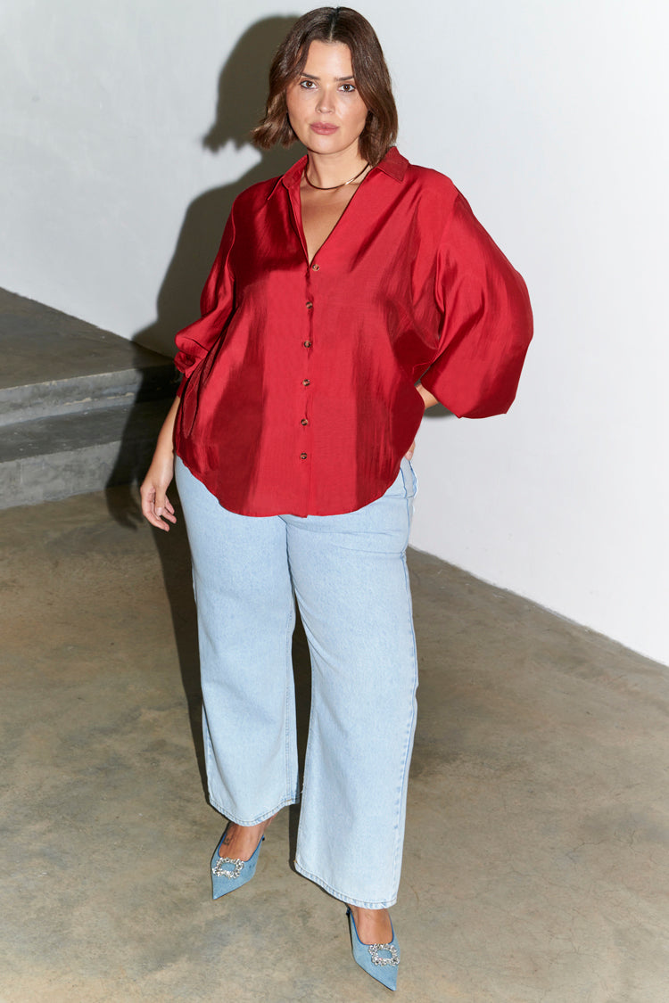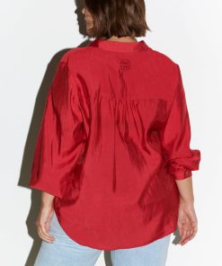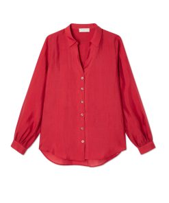 Super wearable with a very slight sheerness for a luxe and lightweight feel, but solid enough for everyday work wear. We have added contrast tortoise buttons for an extra touch of interest and gorgeous embroidered logo on the back neck. Its red hue makes it perfect for the transition into the Autumn Season.