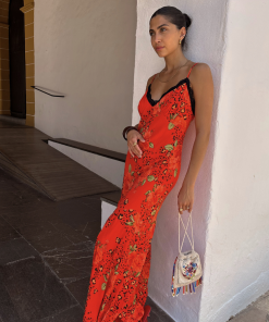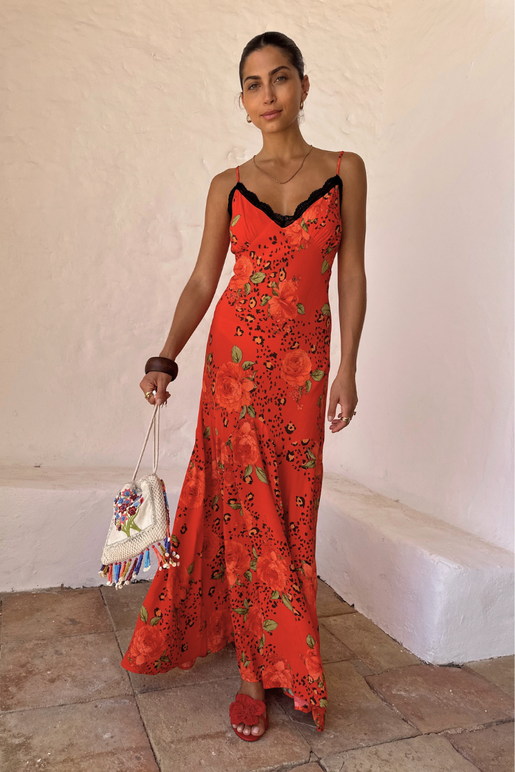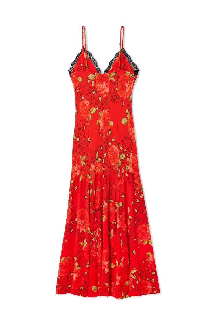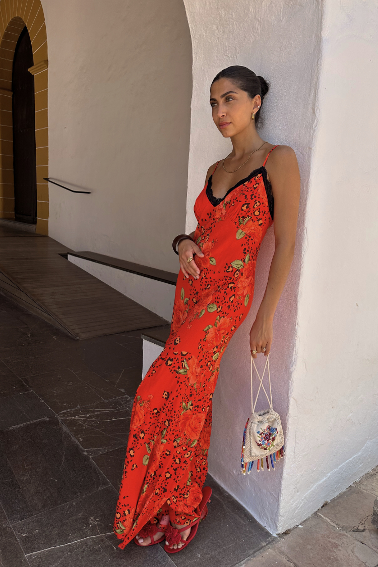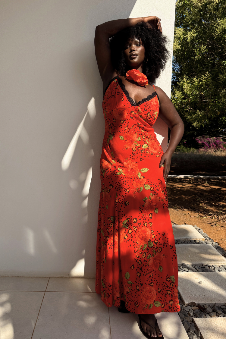 We’re definitely bringing the feel good dressing vibes with this dress! The floral and leopard print and chic silhouette, crafted from panels cut on the bias, make it a must have for occasion or wedding guest dressing. The adjustable straps allow for extra security and make this piece as sexy as it is sophisticated!