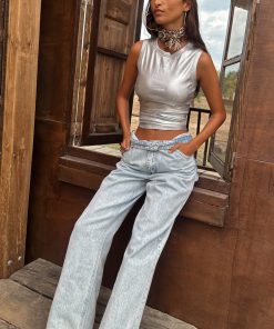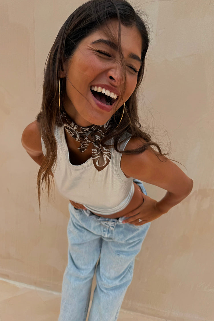 A soft stretch ribbed tank, the perfect foundation for versatile styling. In block colours, these tanks can be paired with anything, or layered under a light jacket for spring. The metallic silver is such a special addition to a simple shape. Embroidered with the NFD logo for a special finishing touch.