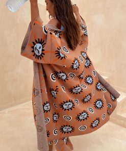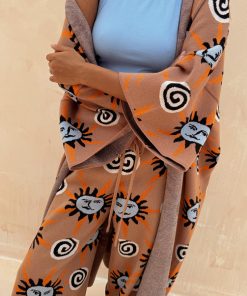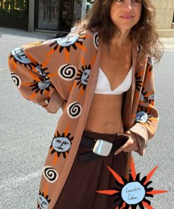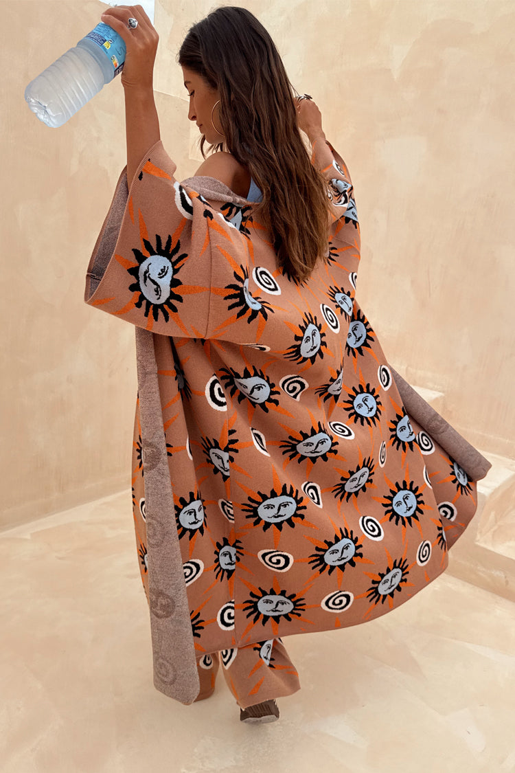 We love this print so much we had to give it to you in another version! Slightly oversized with dropped shoulders and wide sleeves, it’s super cosy and perfect for the transition into the colder seasons. Featuring hand painted sun and swirl motifs, inspired by Mediterranean artistry. Pair with the matching trousers for an effortlessly chic co-ord or as an overlayer.