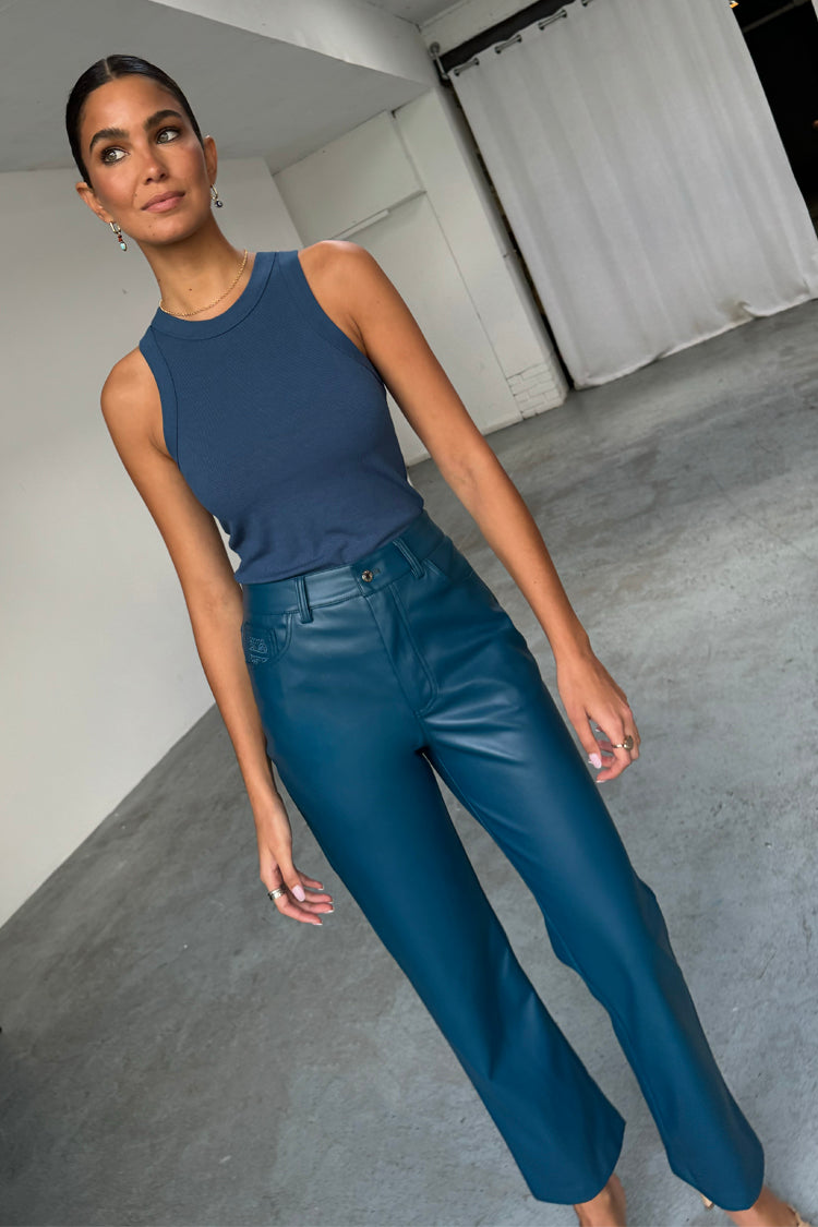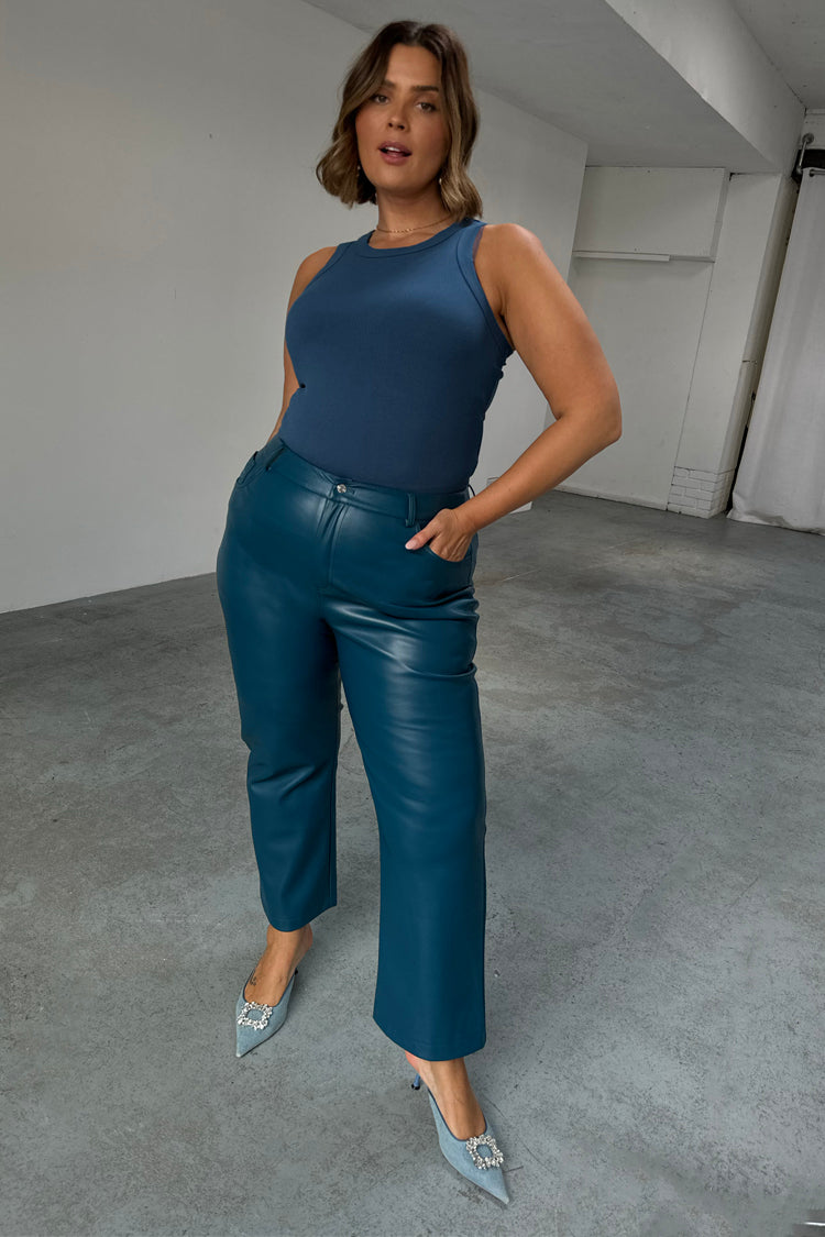 Never Fully Dressed Women’s Teal Vegan Leather Trousers