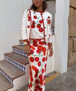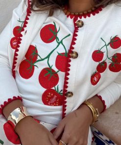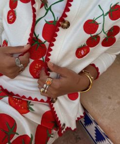 This cardi brings feel good dressing straight to your wardrobe! The gorgeously chic tomato print transports you to the sun and serenity of the balearic islands while the super soft knit base that feels effortlessly luxe and premium! Keep it simple and layer over some scallop jeans or tuck into the matching dorris skirt.